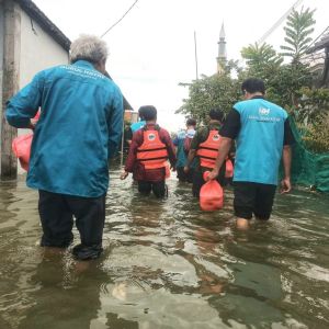 Tembus Arus Banjir, Tim Siaga Bencana Nurul Hayat Gresik Pasok Makanan Siap Saji di Lamongan