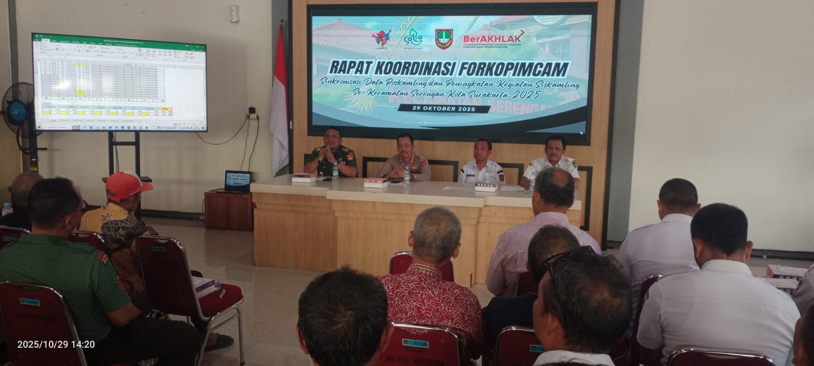 Memfokuskan pembahasan rapat dalam tajuk "Sinkronisasi Data Poskamling dan Penigkatan Kegiatan Siskamling Se-Kecamatan Serengan Kota Surakarta 2025".
