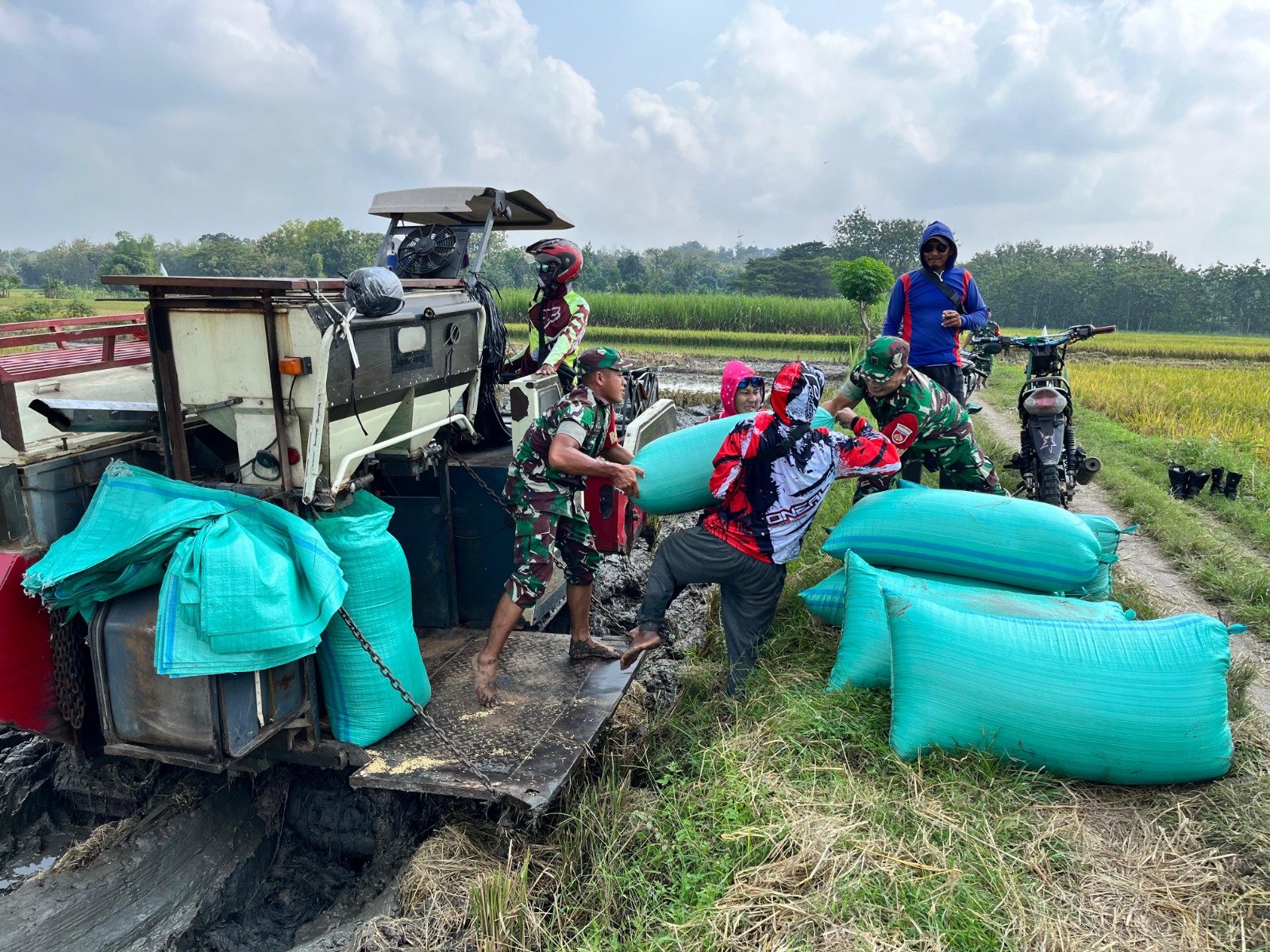 Jaga Ketahanan Pangan, Babinsa Sragen Turun Langsung Dampingi Petani Panen Padi
