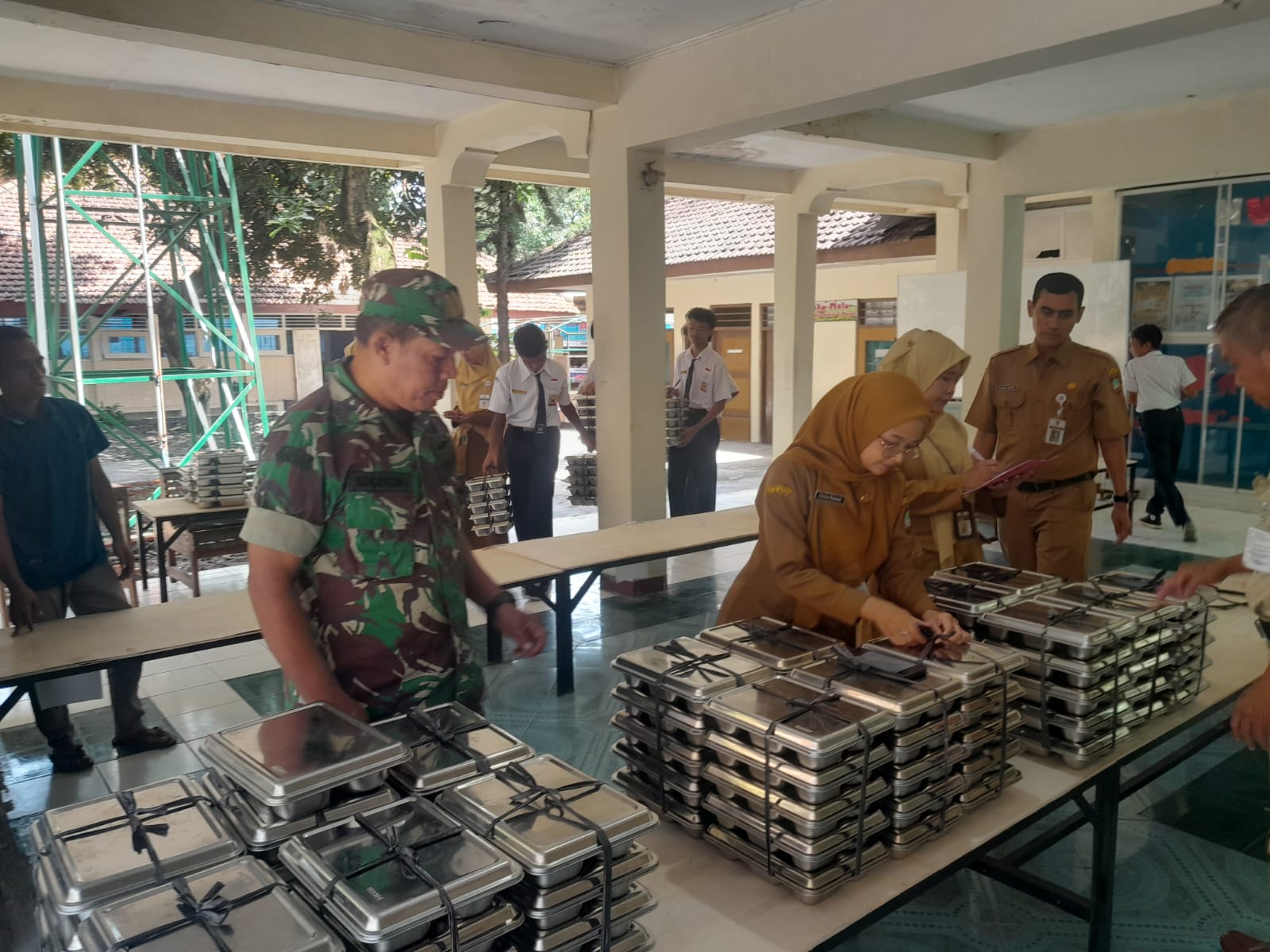 Surakarta, eNews - Babinsa Joyotakan Koramil 03/Serengan Kodim 0735/Surakarta Serka Sudiyono melaksanakan Pendampingan pendistribusian Makan Bergizi Gratis (MBG) di SMP Islam Bakti Jalan Wahid Hasim Rt 03 Rw 01 Joyotakan Serengan Kota Surakarta, Kamis Pukul 10.00 WIB (27/11).