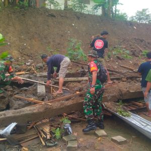 Gerak Cepat Babinsa Kalijambe Bersama Warga Bersihkan Material Longsor di Sangiran