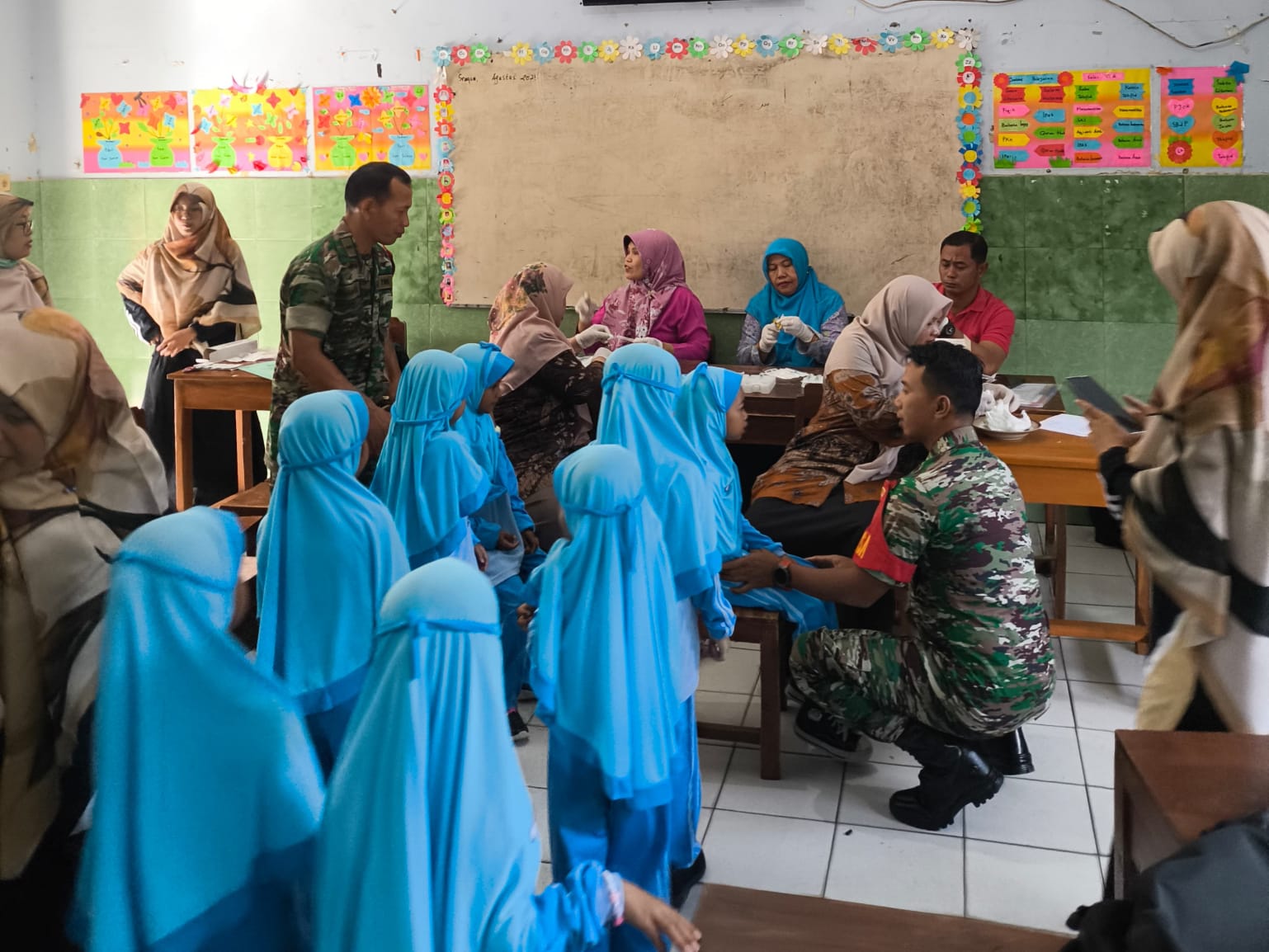 Babinsa Koramil Klego Dampingi Pelaksanaan Bulan Imunisasi Anak Sekolah di MI Miftahu Ulum