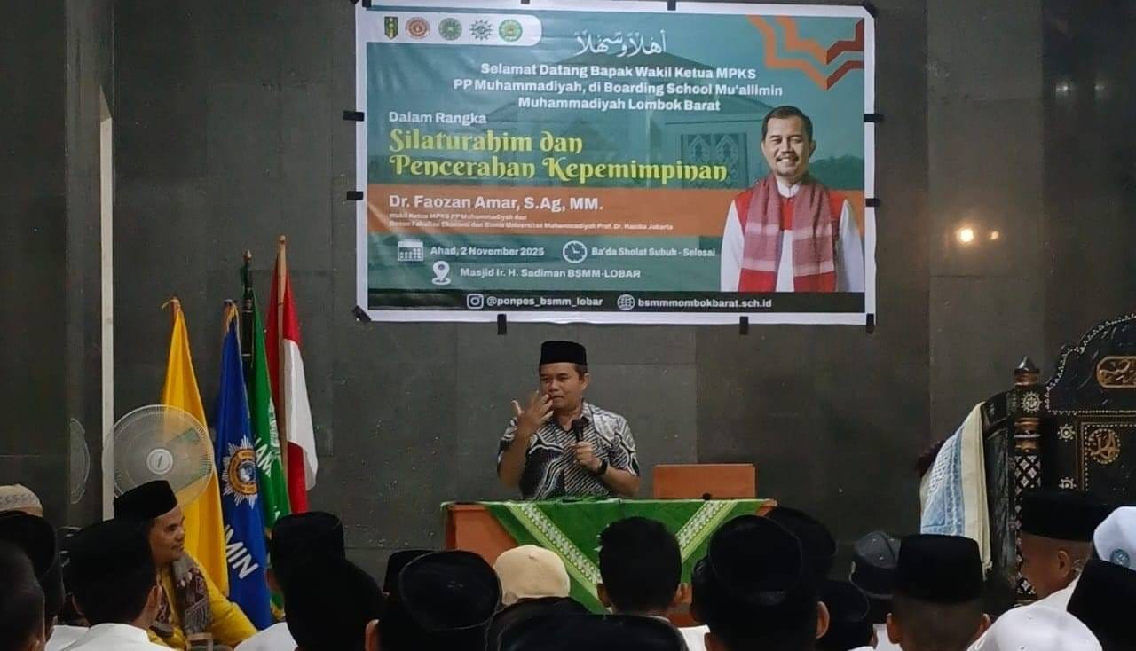 NTB, eNews - Wakil Ketua MPKS PP Muhammadiyah Faozan Amar memberikan kuliah subuh tentang Kepemimpinan di Boarding School Mualimin Muhammadiyah (BSMM) Lombok Barat NTB, Ahad (2/10/2025).