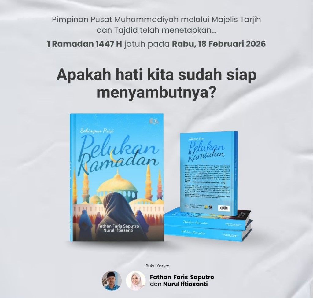Lamongan, eNews – Berdasarkan hasil hisab, Pimpinan Pusat Muhammadiyah menetapkan 1 Ramadhan 1447 H jatuh pada Rabu Legi, 18 Februari 2026 M. Menyambut datangnya bulan suci, antologi puisi berjudul Pelukan Ramadan, karya Fathan Faris Saputro dan Nurul Iftisanti, hadir untuk menemani masyarakat menata hati sekaligus memperdalam makna Ramadan.