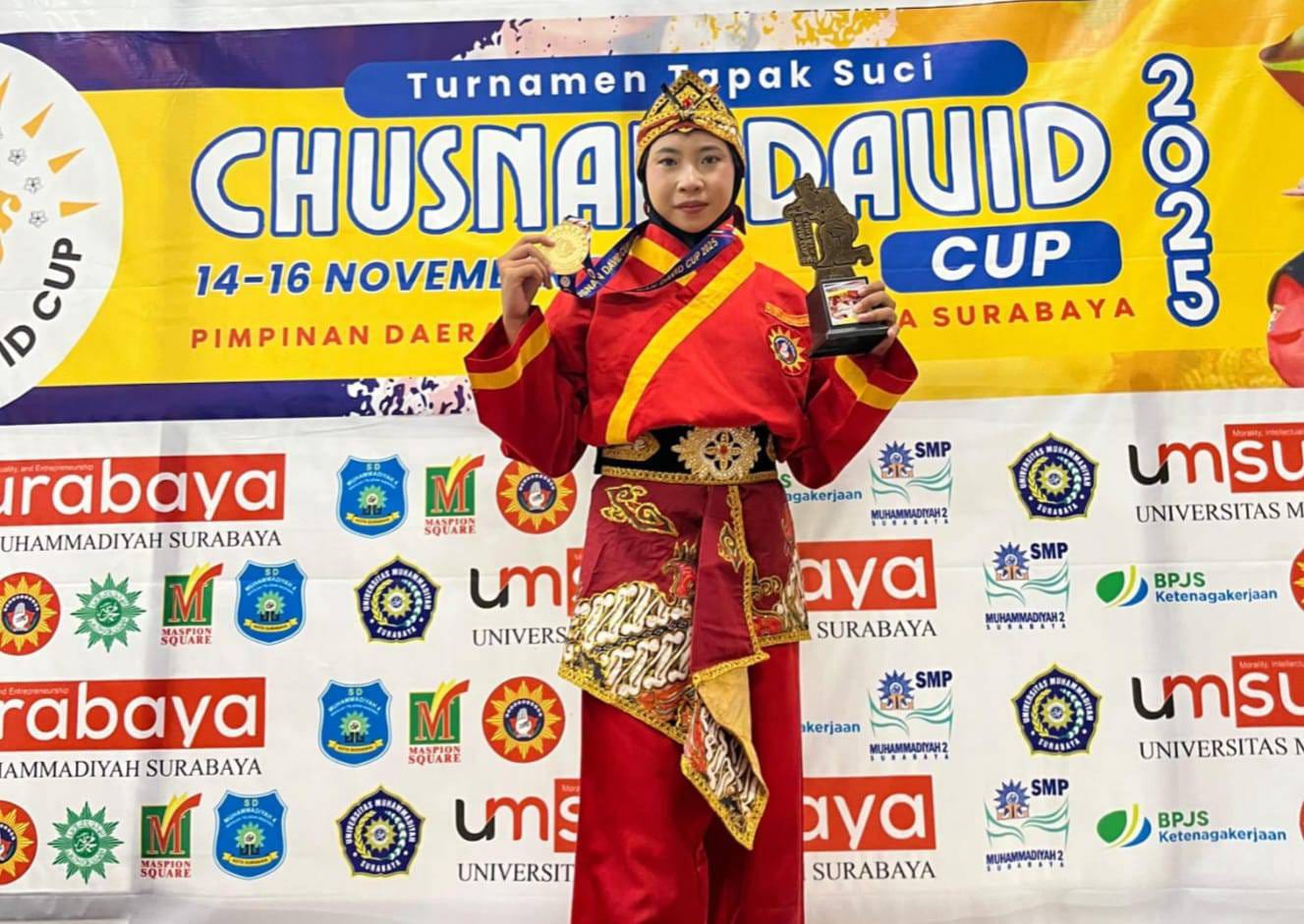 Surabaya, eNews - Perjalanan panjang yang dijalani Dwi Anggraini Nurul Laili, siswi kelas 12 SMA Negeri 13 Surabaya, akhirnya berbuah manis. Aini—begitu ia akrab disapa—berhasil meraih Juara 1 Kategori Seni Tunggal IPSI Putri Dewasa dalam Turnamen Tapak Suci Tingkat Nasional Chusnan David Cup 2025, yang berlangsung di Maspion Square pada 14–16 November 2025.