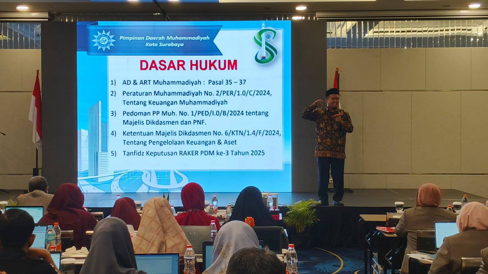 Surabaya, eNews - Pimpinan Daerah Muhammadiyah (PDM) kota Surabaya melaksanakan pembinaan keuangan sekolah/madrasah Muhammadiyah se-kota Surabaya di Grand Liza Ballroom lantai 21 Leedon Hotel & Suites Surabaya, Rabu (1/10/2025).
