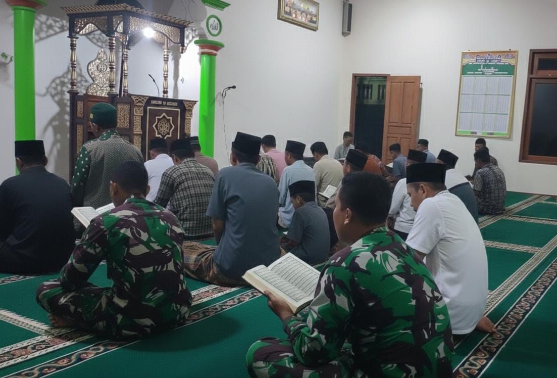 Setelah rangkaian shalat tarawih usai, para prajurit tidak langsung beranjak pulang. Mereka melingkar bersama warga untuk melantunkan ayat-ayat suci Al-Qur'an. Kegiatan tadarus ini direncanakan akan menjadi agenda rutin setiap malam selama masa penugasan TMMD di bulan Ramadan.