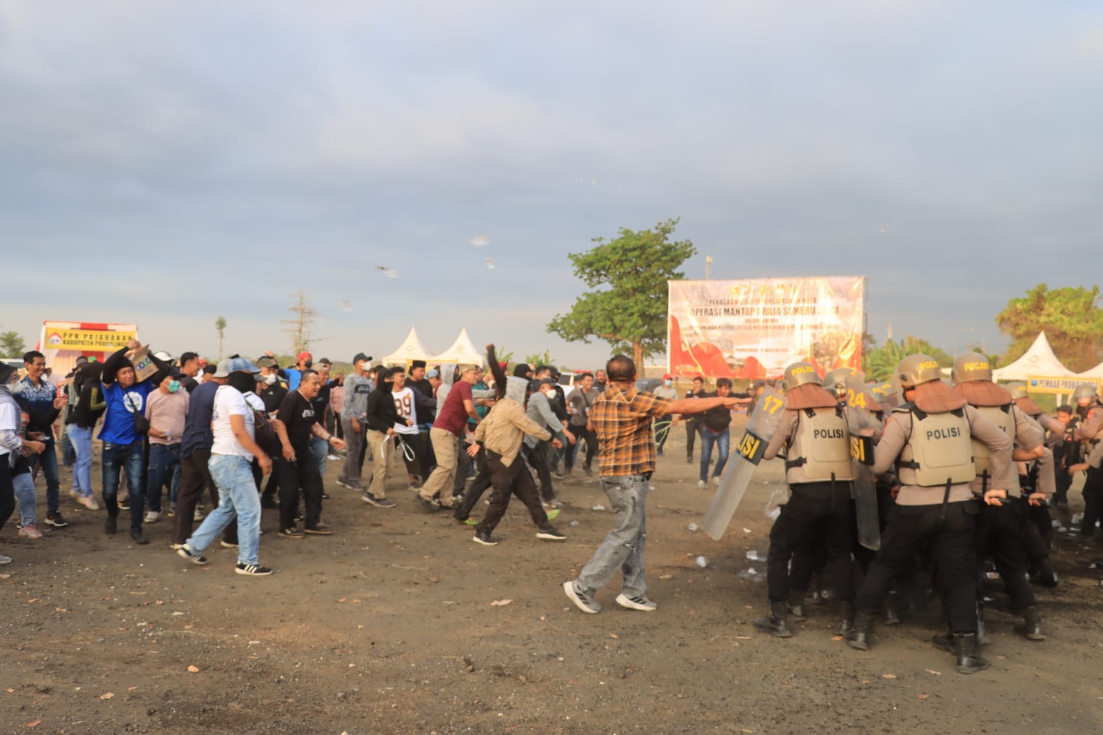 "Menghadapi massa yang kian beringas, ratusan personel pengamanan langsung bertindak membubarkan massa yang dibantu menggunakan mobil water canon," ujarnya.