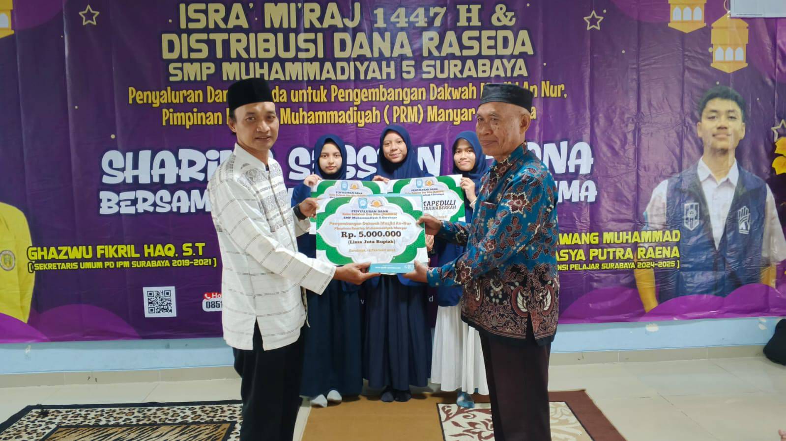 SMP Muhammadiyah 5 Surabaya Peringati Isra’ Mi’raj, Hadirkan Alumni Inspiratif hingga Salurkan Dana Raseda
