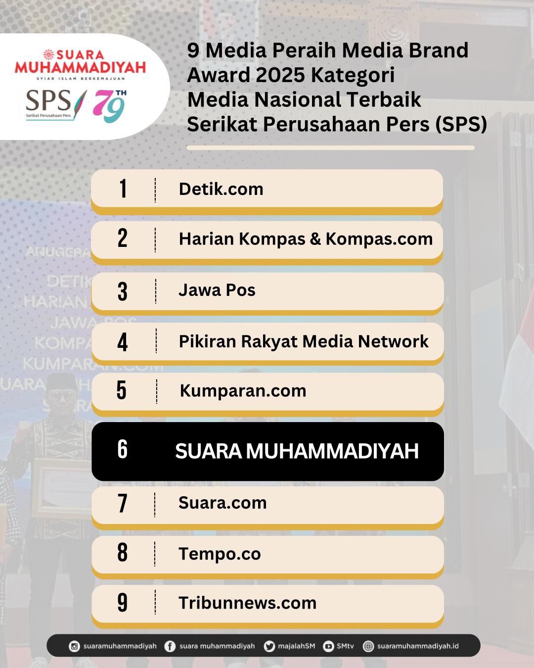 Suara Muhammadiyah Raih Media Brand Awards 2025 dari SPS, Dinilai Mampu Jaga Eksistensi Media Sehat dan Berkualitas